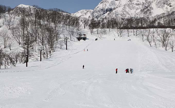 豊富な積雪量がある妙高山麓に位置するスキー場。ワイドで解放感のあるコースが多く、比較的ゆったり滑ることができます。ゲレンデは初中級斜面がメインで全体の約50%を占めるが、パウダーフリークが楽しめる斜面が豊富で初心者やファミリーでも充分に滑りごたえがあるのが特徴です。初級者コース、非圧雪バーンからなる「ヨーデルゲレンデ」、初級者から上級者コースが多彩に楽しめる「くまどーゲレンデ」、そしてキッズパークと初心者コースがある「銀嶺ゲレンデ」の3エリアから構成されています。