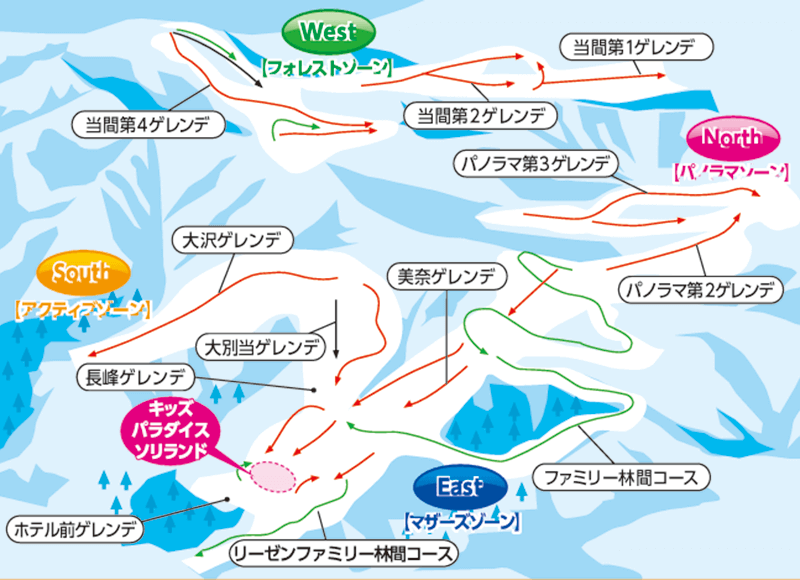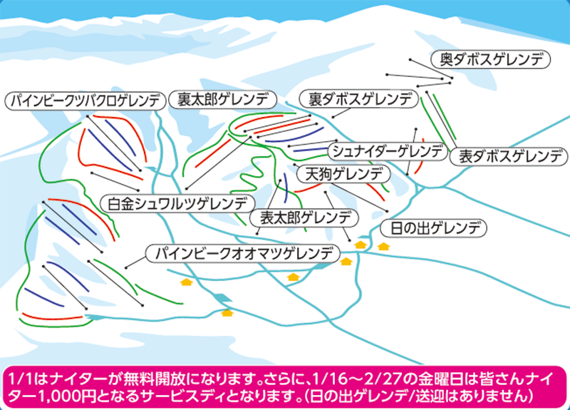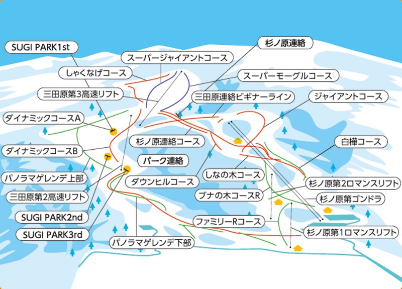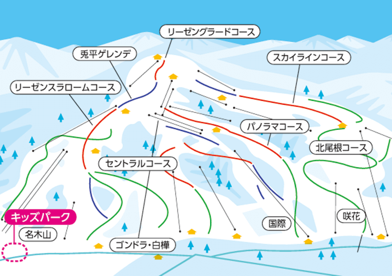 コース コース16本・リフト6本・最長滑走距離3,500m