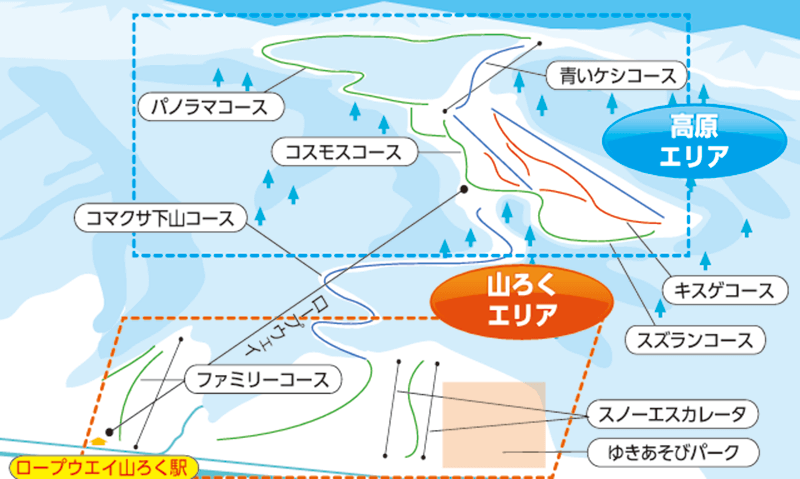コース コース26本・リフト10本・最長滑走距離6,000m
