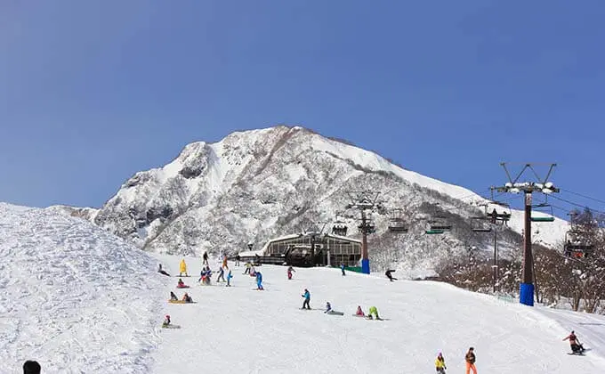 豊富な積雪量がある妙高山麓に位置するスキー場。ワイドで解放感のあるコースが多く、比較的ゆったり滑ることができます。ゲレンデは初中級斜面がメインで全体の約50%を占めるが、パウダーフリークが楽しめる斜面が豊富で初心者やファミリーでも充分に滑りごたえがあるのが特徴です。初級者コース、非圧雪バーンからなる「ヨーデルゲレンデ」、初級者から上級者コースが多彩に楽しめる「くまどーゲレンデ」、そしてキッズパークと初心者コースがある「銀嶺ゲレンデ」の3エリアから構成されています。