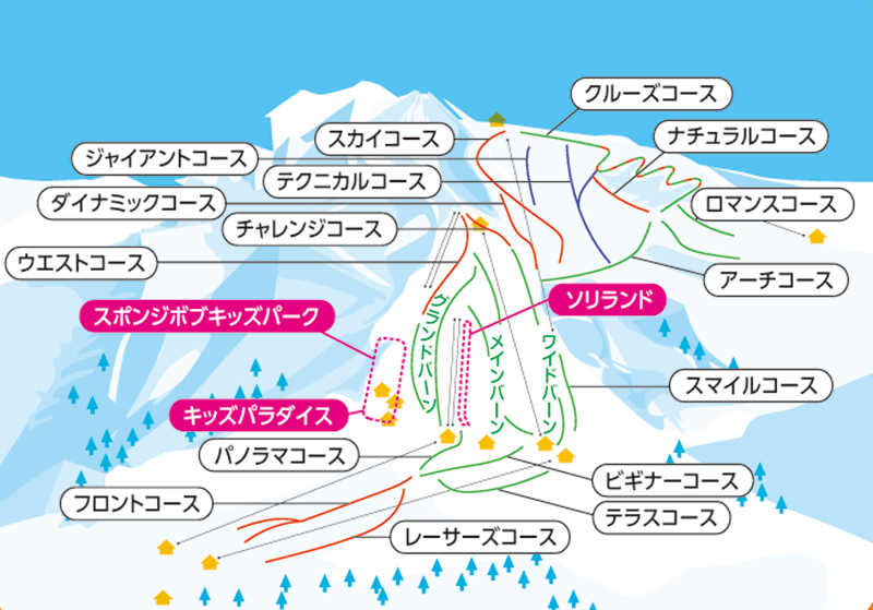 スノボ用品店の店員さんにお勧めして頂いたのですが、ワイドな斜面が初心者にはありがたかったです。