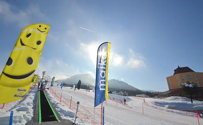初級者でも楽しめるなだらかなロングコースから、中上級者も満喫の多彩な傾斜コースが揃う「長峰ゲレンデ」と舞子高原ホテル・ロッジに面した初・中級者向けのコンパクトなレイアウトの「舞子エリア」、ゲレンデトップのすり鉢状の地形が特徴でパウダースノーも楽しめるの「奥添地エリア」から構成されたスキー場。山頂までのゴンドラを備えており、最大6,000mのロングコースを何度も滑走できることも魅力です。舞子スノーリゾートには小さなお子様連れのファミリーにおすすめの施設が充実!スキー・スノボをしないお子様はソリやスノーラフティングを楽しむことができます。