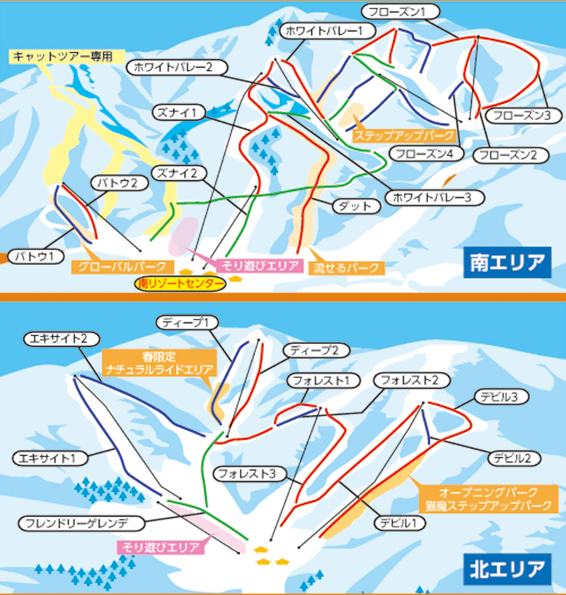 個人的にはこぢんまりとしていてアクセスもやや悪いですが北側の方が気持ち良く滑れて良かったです。