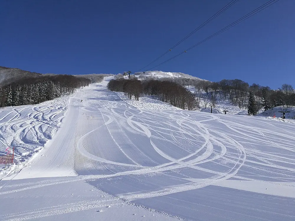 きちんと整備されたバーンは滑りやすく、カービングターンの練習にも最適。スキー場としてはコンパクトながら、最長滑走距離は4,000mとロングライドもしっかり楽しめるのも魅力です。上級者向けにはコブ斜面もあり、自然の地形を生かしたコースは何度でも滑りたくなる面白さです。