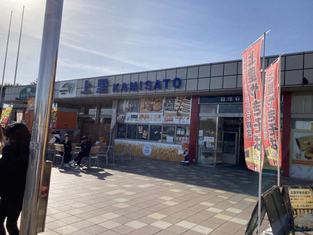 途中、「上里サービスエリア」で休憩があります。集合までは15分間なので、化粧室に行ったり、小腹を満たしたり、自由に過ごせます。「上里サービスエリア」は埼玉県と群馬県の県境にある大型のサービスエリアで、ご当地グルメが充実していてカフェもあります。感染症対策のため、バスの中で食事はできませんが、フタつきの容器に入った飲料なら飲むことができました。