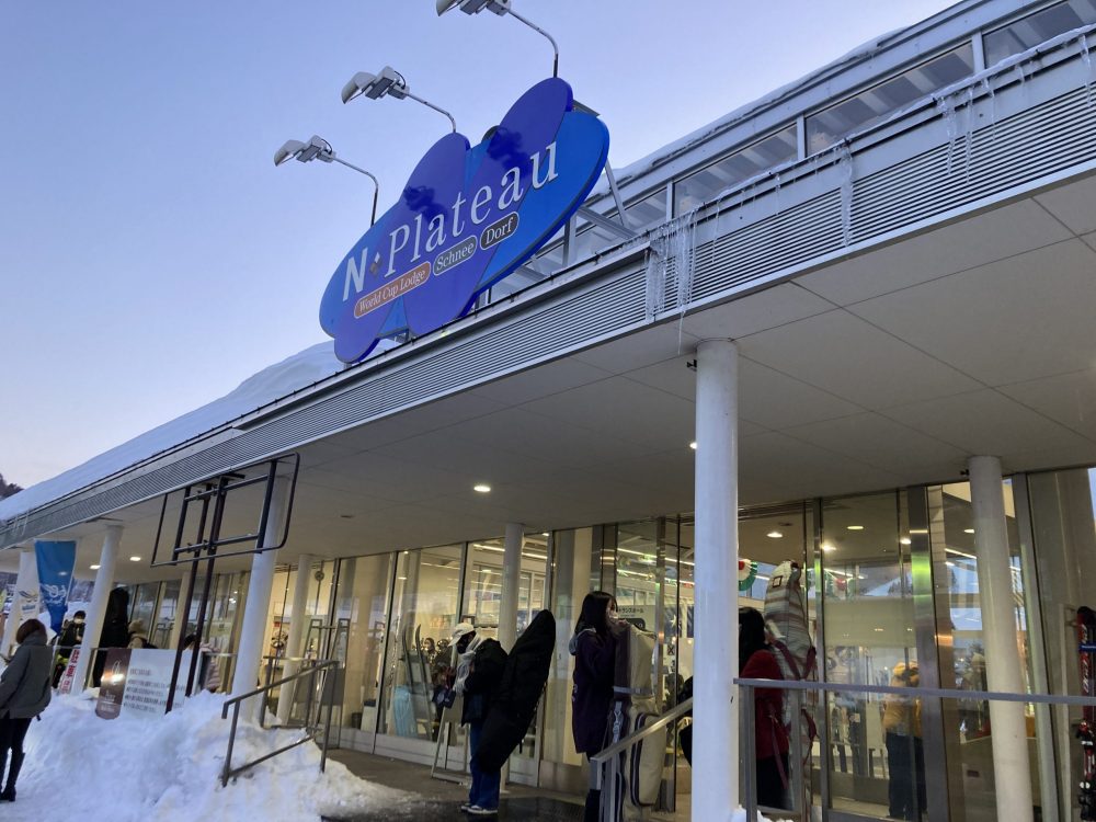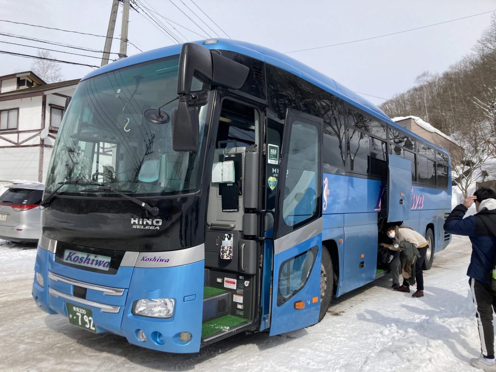 ゲレンデ目の前の利用施設、日帰りスキーセンター前で降車します。今回はスキーのレンタルを事前に申し込んでおいたため、到着後にレンタルショップに連絡しショップまで送迎してもらいました。少し手間ですが、スキー場のレンタルショップよりはかなりお得な値段でレンタルができます。