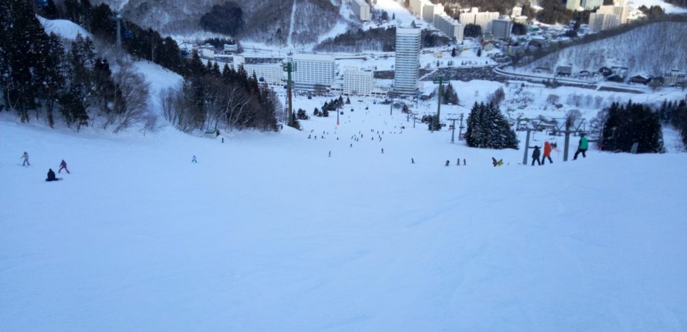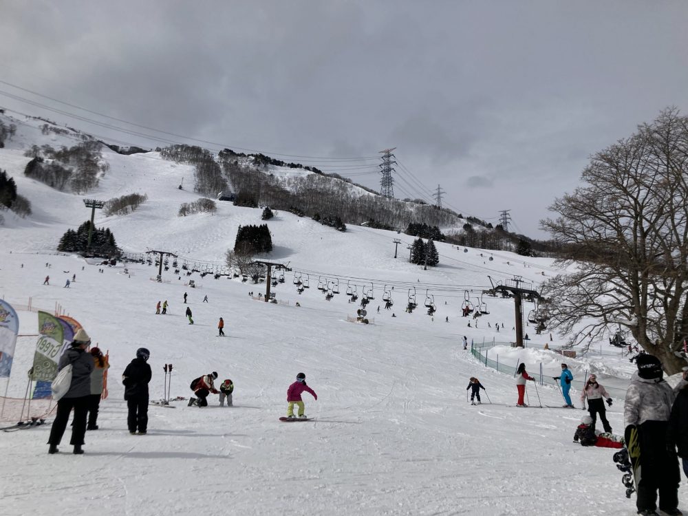 苗場スキー場は、総面積約135haと広大です。多彩な22コースから構成されており、標高が高い「山頂エリア」「ホテル前エリア」「火打・ドラゴンドラエリア」の3つのエリアに分かれています。知名度が高く人気のあるスキー場で、2月の三連休の中日ということもありゲレンデは混雑してはいましたが、広々として滑りやすい印象です。初心者の子どもも周りを気にせず、思い切り練習できます。