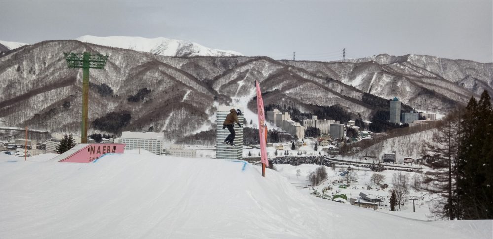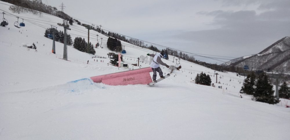 「苗場スキー場」の南側エリアには「Naeba SNOW PARK」があります。スノークロス、キッカーやファンレールなどのアトラクションが設置されています。「苗場スキー場」に着いてすぐ、スノーボーダーの方が多い印象を受けましたが、スノーパークのアトラクションが充実しているからでしょう。