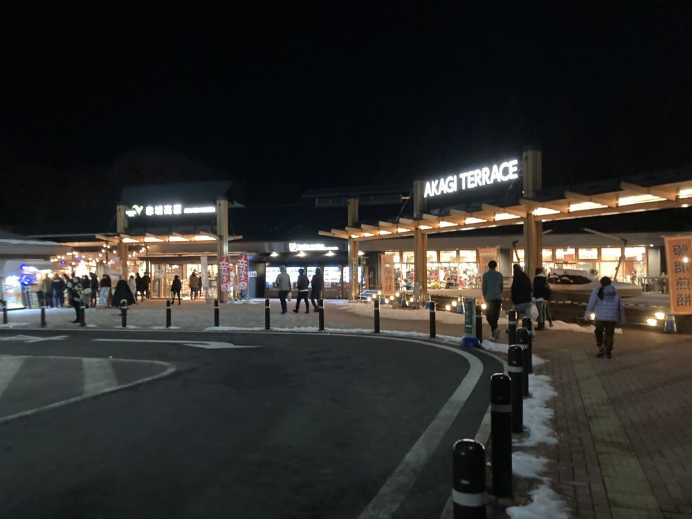 バスに乗り、一路東京を目指します。途中、「赤城高原サービスエリア」で休憩、15分間ほど停車します。こちらのサービスエリアには周辺で収穫された新鮮な野菜の販売や、名産品を使ったグルメが販売されています。イルミネーションも見られて、しっかりリフレッシュできました。