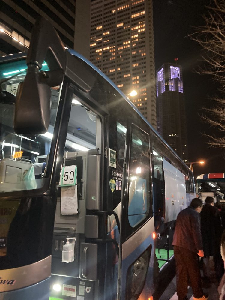 新宿に到着しました。周りには他のツアーバスも停車していました。トランクに預けていた荷物を引き取ったら、そのまま解散です。