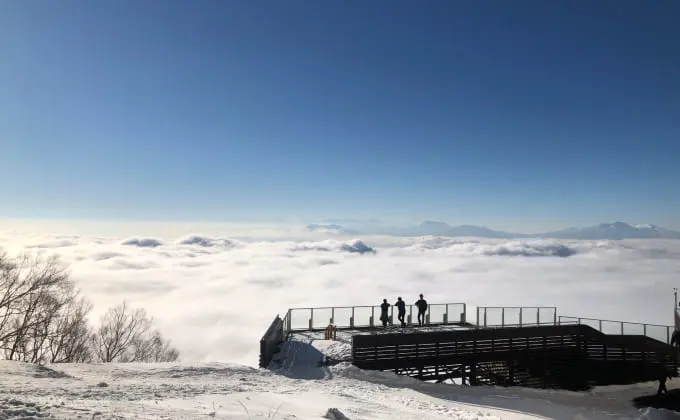 国内有数の上質なパウダースノーと雲海の絶景が人気の「竜王スキーパーク」は、標高差1,000m以上、上級者から初級者までが楽しめるスキー場です。世界最大級、166人乗りのロープウェイに乗って行けるのは「雲海」が広がる幻想的な世界と美しいサンセットを堪能できる「SORA terrace」。絶景を望みながらお食事が楽しめる「SORA terrace cafe」は、家族で体験したいアクティビティの一つです。