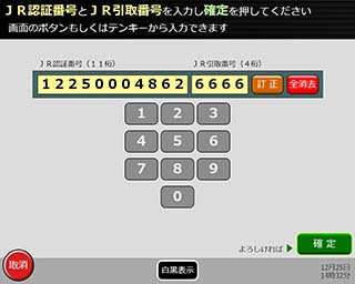 「JR認証番号/JR引取番号」ボタンを押して進む