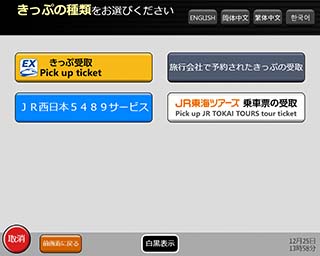 発券機メニュー画面より「インターネット予約の受取」を選択